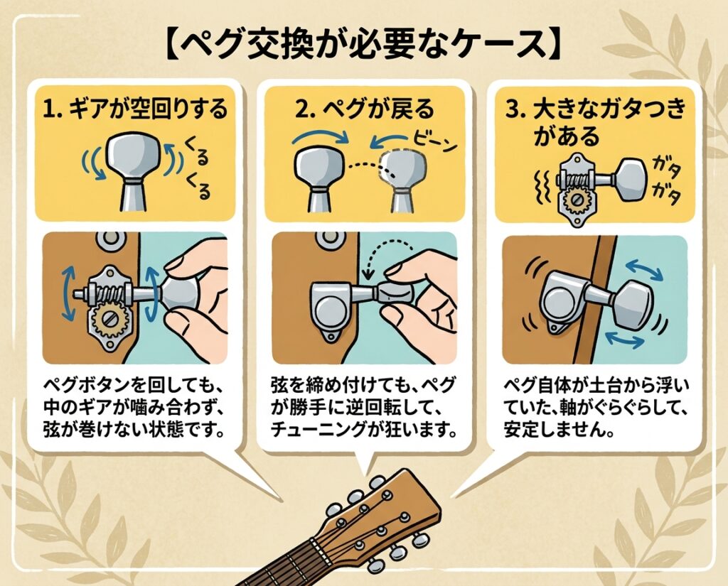 ペグ交換が必要なケース