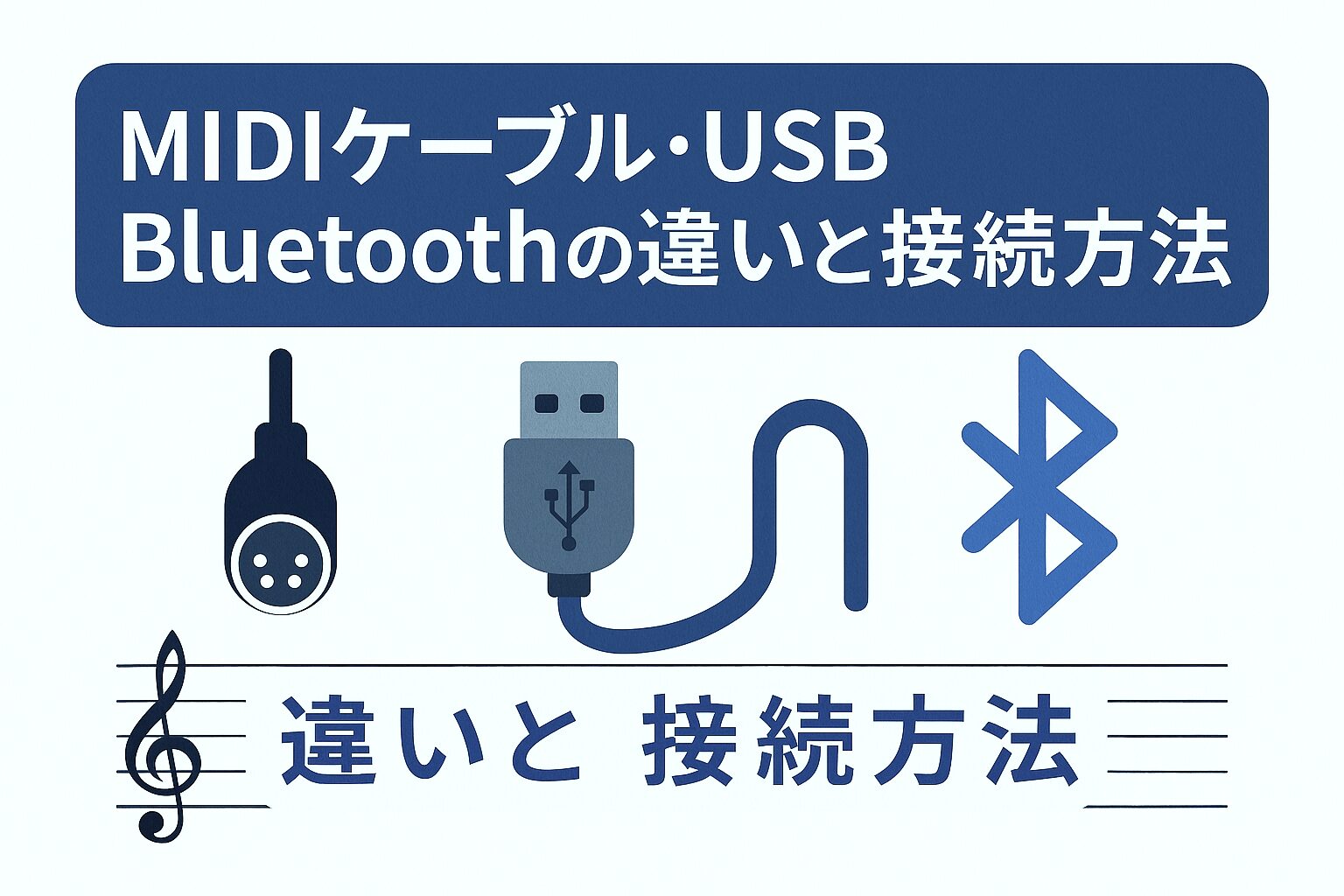 この記事では、3つの接続方法(MIDIケーブル/USB/Bluetooth)の違いをわかりやすく図で解説。 あなたの環境に合った“最適なつなぎ方”が見つかります。