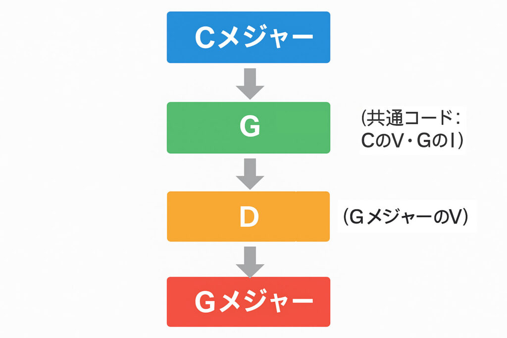 ③ 近親調転調 | Cメジャー → Gメジャー | 違和感が少なく、曲の流れを保ったまま変化できる。 |