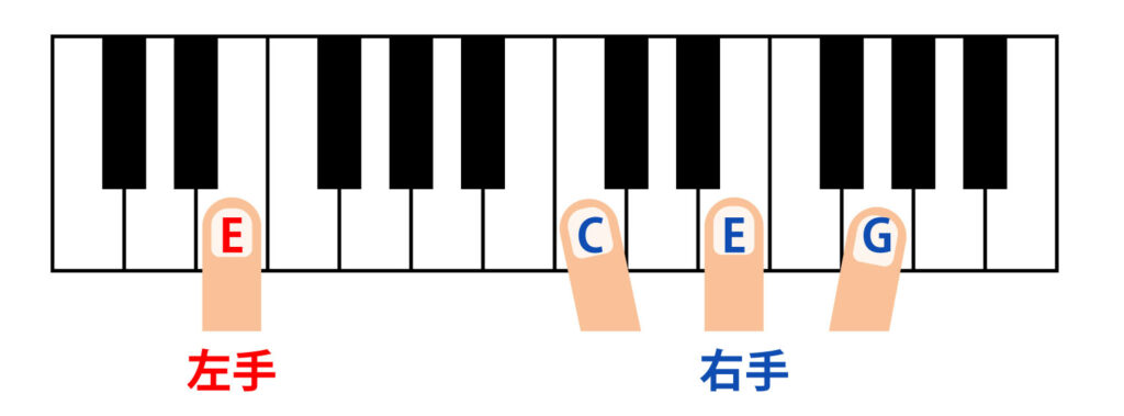 - 左手でスラッシュ後のベース音を弾く(例:E)