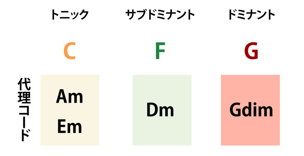「C → E7 → Am」= トニック → 代理ドミナント → 代理トニック